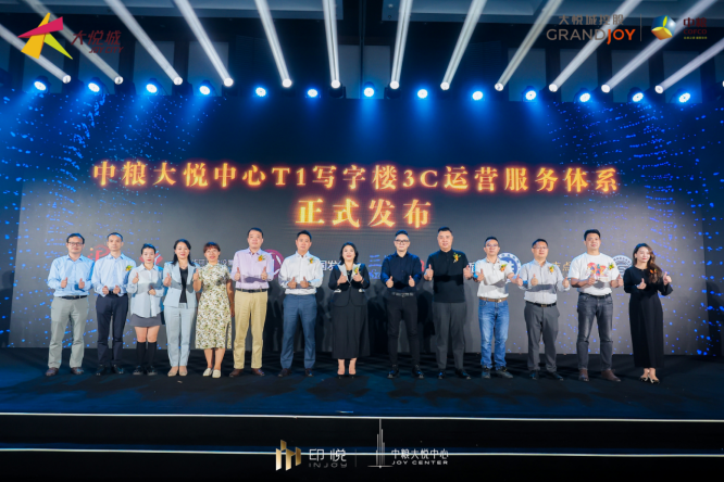在全场来宾共同见证下,深圳大悦城二期新品发布会迎来高光时刻,特邀嘉宾携手登台,共同点亮手中星光,隆重启动中粮大悦中心T1写字楼3C运营服务体系,潮流新章就此序启。