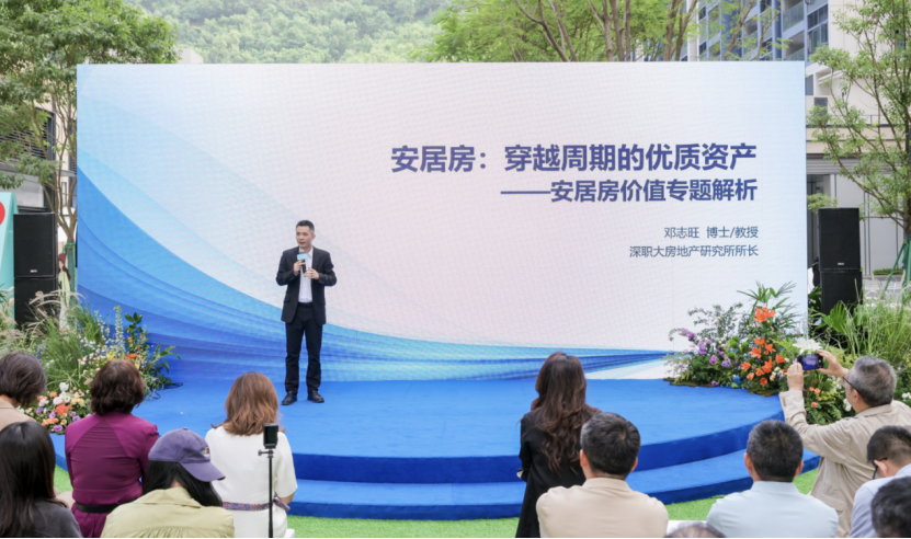 在行业分享环节,前海政策洞察官、深职大房地产研究所所长邓志旺带来了深度政策解读。他结合安居房最新的利好政策,深入分析了安居型商品房的市场优势与未来同等商品房的置业潜力,并指出:“山樾湾花园占据前海核心区位,同时满足深户社保、无房等主流购房条件,是刚需家庭把握政策红利、安家南山的优选之作,堪称‘穿越周期的优质资产’。”
