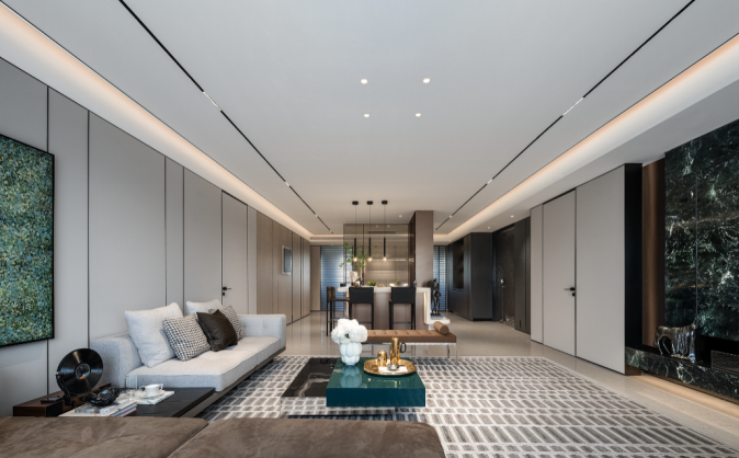 值得关注的是,基于高净值群体质感生活的需求,融创壹号院将多种稀有奢石,搭配皮革、玻璃、金属等多种材质和功法技艺,定制成三种不同风格的室内样板房和车库、公共电梯间,近期,更将社区大堂、艺术园林、建筑立面的高品质进行了首次展示,创新了生活场景与居住体验。