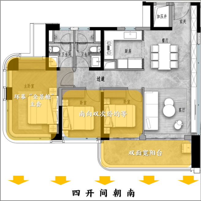 在户型格局方面,接近6米长的双面宽阳台是个大亮点,它直接连通了客厅和次卧,像一个延伸出来的“第二客厅”。在这里喝茶晒太阳,或者给孩子多一个活动空间,都非常惬意。