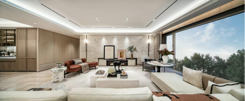 其中,项目倾力打造的建面约225平方米“精致海派”与252平方米“雅致东方”实楼样板间,将未来生活蓝图具象呈现:以全景落地窗打破空间边界,并以LDK一体化空间与双套房设计重构生活场景,更将利勃海尔等顶级家电以定制化设计巧妙融入,实现功能、美学与品质的完美统一。