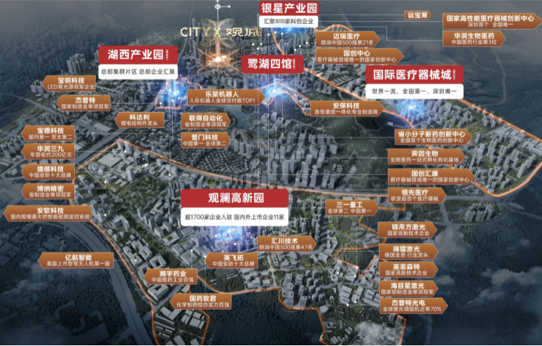 近几年,深圳北部中心正在崛起,也改变着深圳人过往对其的认知。鸿荣源观城所在的“鹭湖中心城”,是龙华区重点建设的七大片区之一,与北站国际商务区共同构成龙华“南北双中心”发展格局。而龙华北中心如今已集聚了龙华区70%的产业,华为、迈瑞、华润、稳健医疗等龙头企业领衔,超3300+家高新企业在此落户,形成了一个年产值营收超3300亿元的庞大产业集群,将引领龙华区的下一个十年发展。