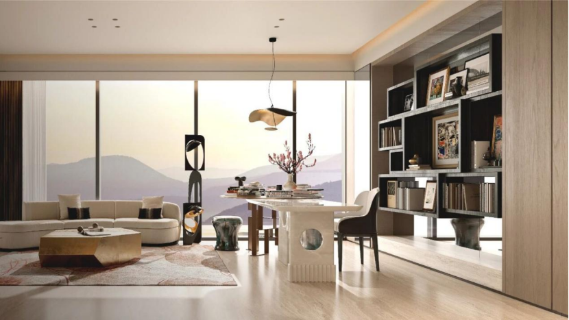 空间设计极具灵活性与生长性。部分户型提供超过60平方米的可拓展空间,可根据家庭生命周期变化,随心改造为书房、健身房、儿童活动区或第二客厅。部分高区户型甚至可进行整层打通,为企业主打造云端会客厅或家族会馆。大户型采用双套房乃至多套房设计,贴心照顾多代同堂的居住需求。在主起居室套间内,除了常规的衣帽间、卫浴间,更创新性地增设了独立“藏品间”,用于收纳珠宝、腕表、艺术品等私藏,满足了高端客群对精神收纳与价值珍藏的深层需求。
