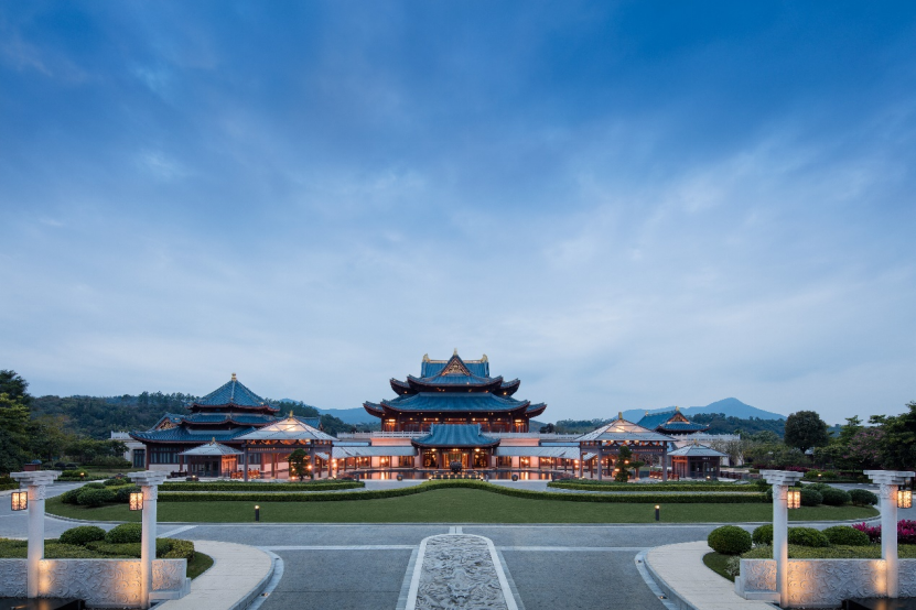 在凤凰山麓的密林深处,广州从化流溪河生态保护区内,有一座拥有近280万平方米的恢宏规模,将汉唐风骨与现代气韵完美融合的现代庄园——从都国际庄园。这里,蓝瓦朱柱的盛唐建筑与层峦叠翠的山水相映成趣,古典与现代在此对话。