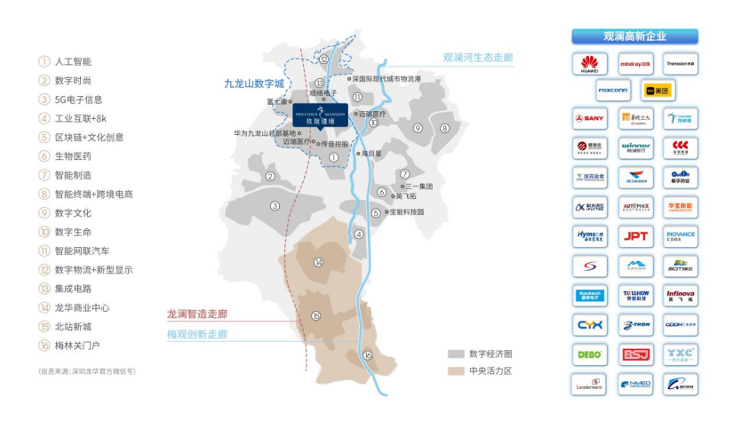据悉,九龙山数字城规划规模约为南山高新园2倍,3500亿规划产值将超越龙华区2024年全年GDP,目前已汇聚华为、迈瑞医疗、传音控股等近300家规上企业,形成三大千亿产业矩阵,规划创造20万个就业岗位,产业集聚效应持续凸显。