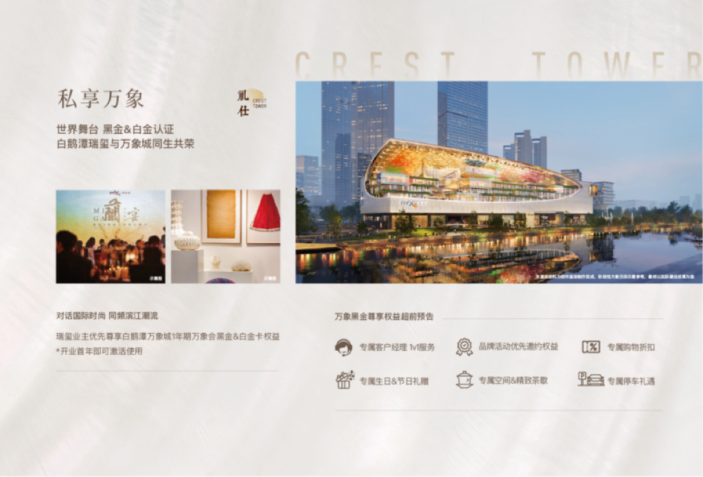 顶豪的价值不仅在于物理空间,更在于其背后的“圈层资源”。圈层的“精准聚合”,则让瑞玺成为“同类者相聚”的精神场域。瑞玺通过“万象生态”实现资源联动——业主可优先享受万象城的会员权益,真正实现“居住即享”。