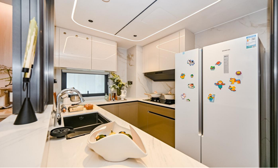 从入户那一刻起,便能感受到越秀地产对品质的严苛与追求。项目在选材上严苛遵循环保与美学并重的原则,地面采用(材质),厨房与卫浴空间甄选国内外一线品牌,不仅解决了业主后期装修的奔波之苦,更在细节上做了大量人性化升级,如抽拉式水龙头、入户玄关感应灯等。