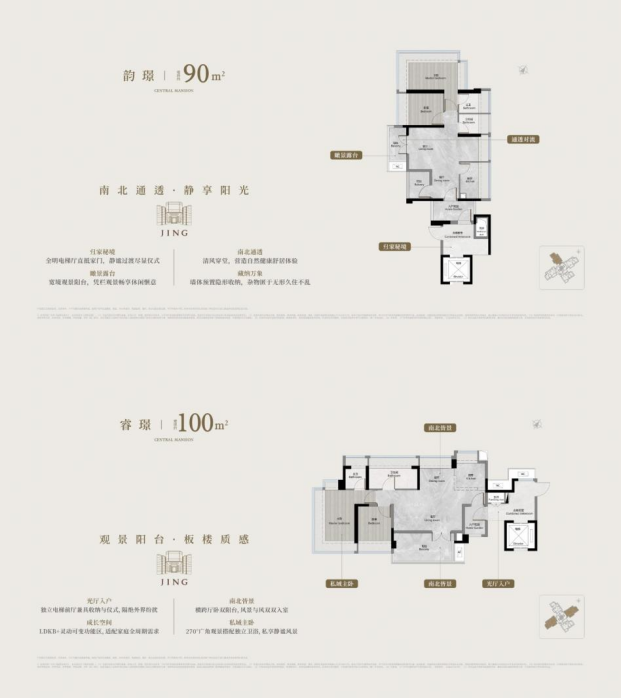 建面约90平方米、100平方米户型新规户型下的板式舒居体验