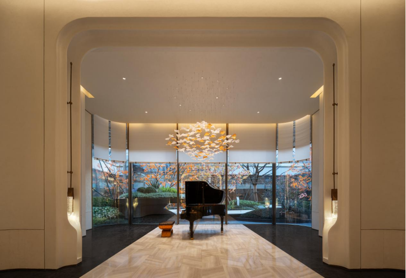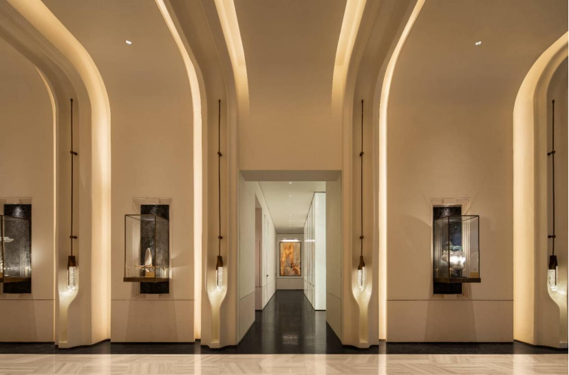 而此次艺术会所的实景开放,是这场美学实践的深刻呈现。金茂满曜以现代设计风格与全龄全时的功能配置,打破了生活与艺术的界限。步入其间,艺术化为可触摸的生活仪式。从入口非遗景泰蓝的工艺细节,到前厅消融内外界限的玻璃幕墙;从致敬建筑大师的流动艺术长廊,到定期轮展的“国礼”级真品与百年名琴……金茂满曜以 “所见即所得”的实景,将对材质的严苛甄选与工艺的极致打磨,升华为一套可感可知的空间美学系统。