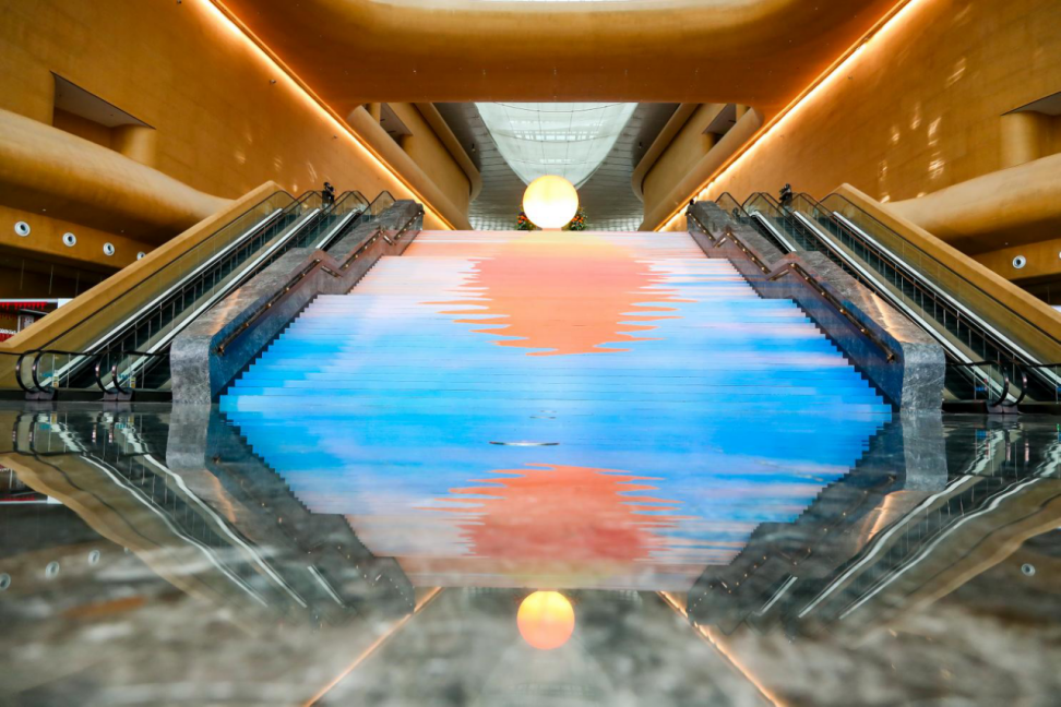 《海上明珠》:落日海面铺展城市天际线。作品灵感源自张九龄名句“海上生明月”,巧妙将古典诗意融入现代都市语境,寓意南沙壹号如明珠般闪耀湾区海岸。