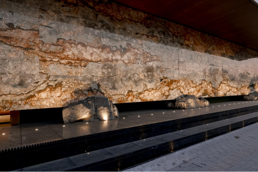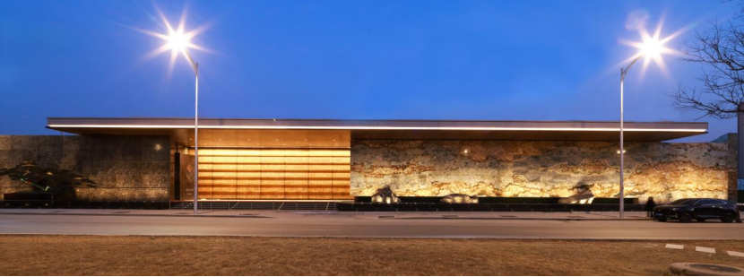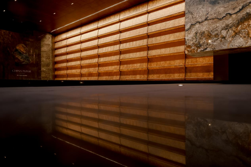 敬畏也化为磅礴的界面形制。长约170米、高约8.3米的超级界面,臻选香格里拉、乌金琉璃、金光麻等全球稀有石材,通过现代技法,重构东方门庭的“水墨长卷”。它的震撼程度,超越了门的物理功能,而成为一部矗立于金轴之上的立体史诗,既承接文化厚度,亦与这座城市的精神坐标,傲然相映。
