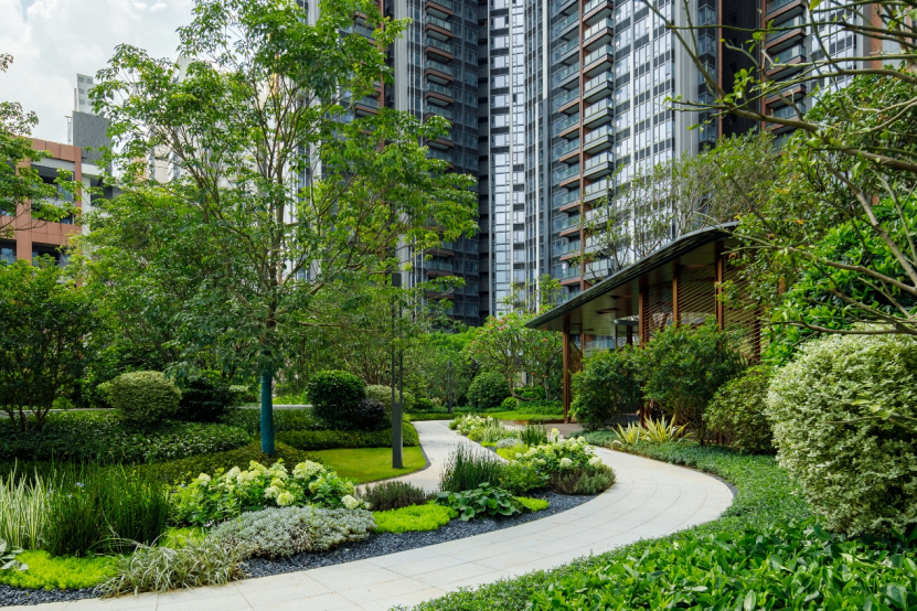 沿着精心设计的园林小径漫步,中央草坪客厅、植物花境、秘境步道、水景组团四大功能区依次呈现,营造出层层递进的归家体验。